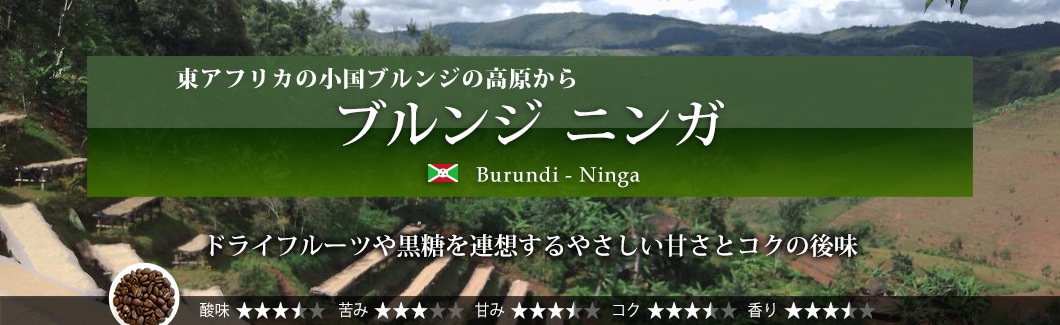 ニンガ地区の小農家さんが丁寧に栽培したブルボン種による『 ブルンジ ニンガ 』の、まろやかで気品のあるやさしい一杯をぜひお楽しみください。