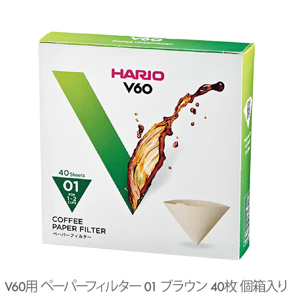 HARIO ハリオ V60 01用 ペーパーフィルター ブラウン みさらし 40枚 個箱入り VCF-01-40M 円錐フィルター