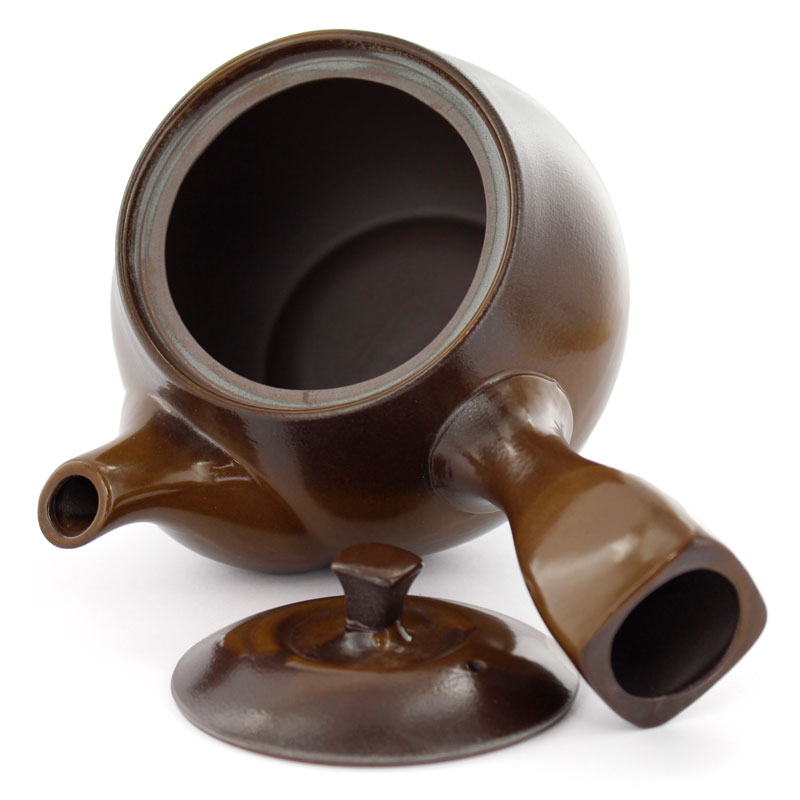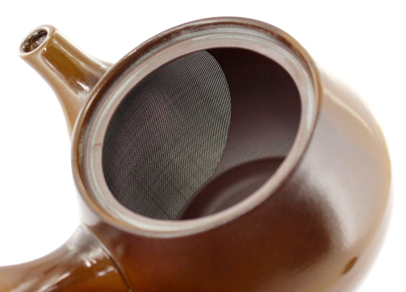 四日市萬古焼(ばんこ焼)の急須は、生地から焼き上げるまでの間に約20%縮みます。これだけ縮みますと水分を通しません。そのた急須の内側はを釉薬を使っていません。この無釉部分のセラミック(陶器)がコーヒーの苦み・雑味を適度に吸着して、まろやかなコーヒーになります。