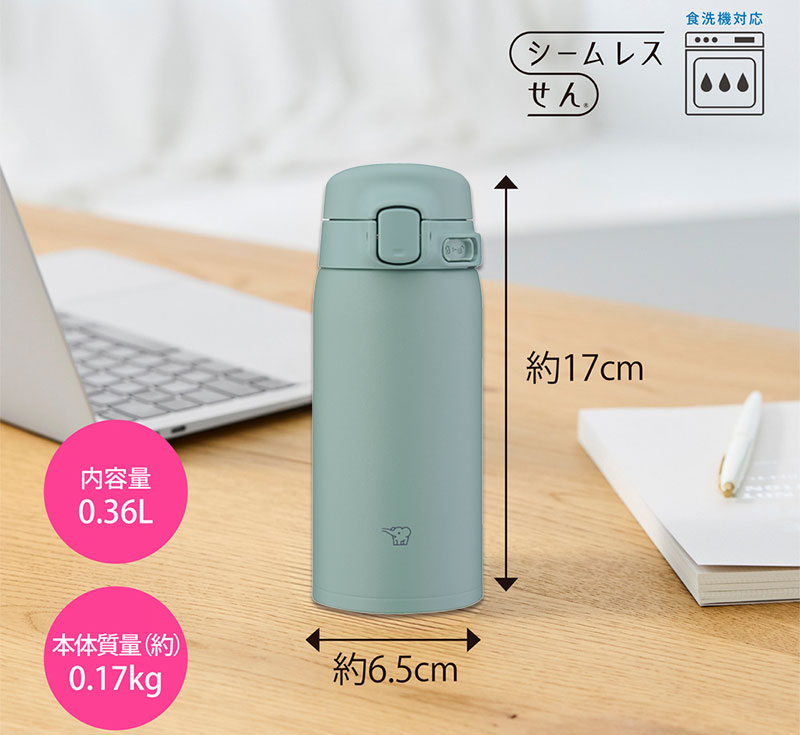 象印 ステンレスマグ 360ml カームグリーン SU-BA36GM ワンタッチ シームレスせん