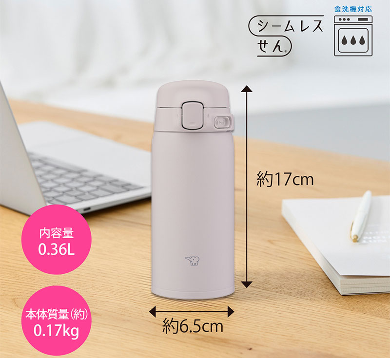 象印 ステンレスマグ 360ml ソフトグレージュ SU-BA36HM ワンタッチ シームレスせん