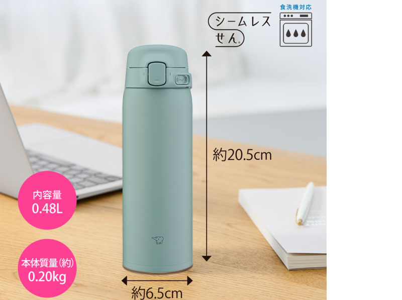 象印 ステンレスマグ 480ml カームグリーン SU-BA48GM ワンタッチ シームレスせん