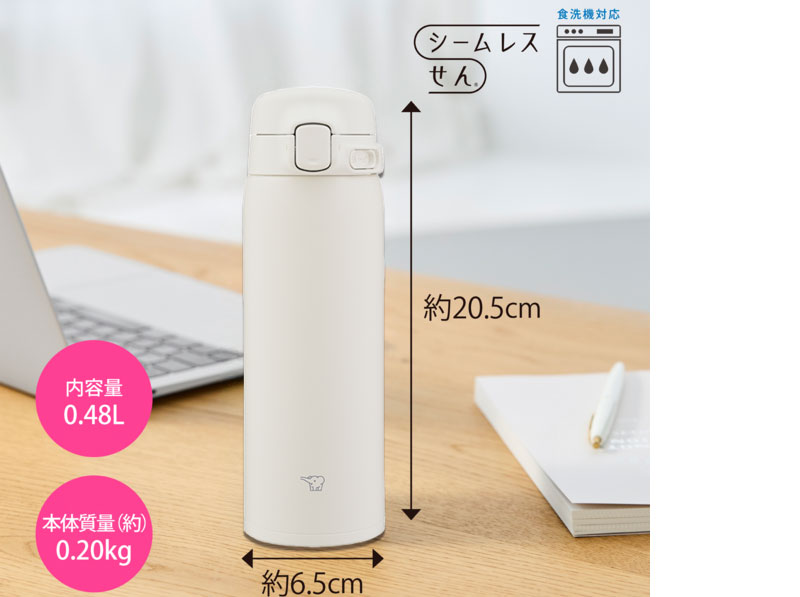 象印 ステンレスマグ 480ml コクーンホワイト SU-BA48WM ワンタッチ シームレスせん