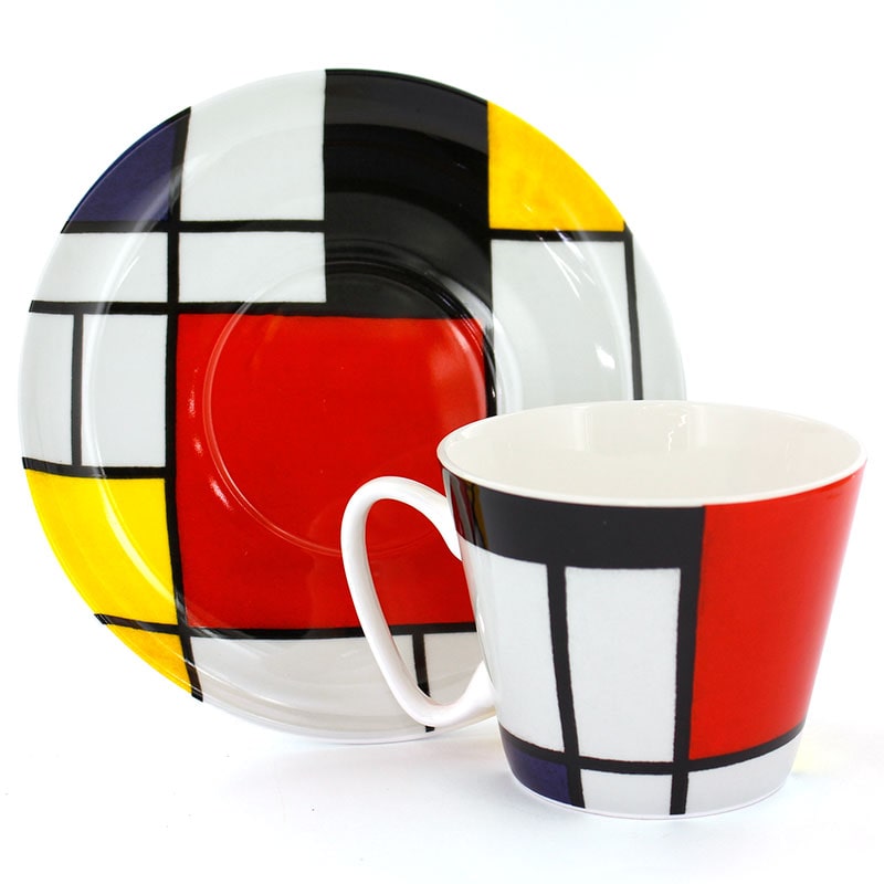 名画カップ&ソーサ― 250ml モンドリアン 【コンポジション ライン&カラー】 ボーンチャイナ