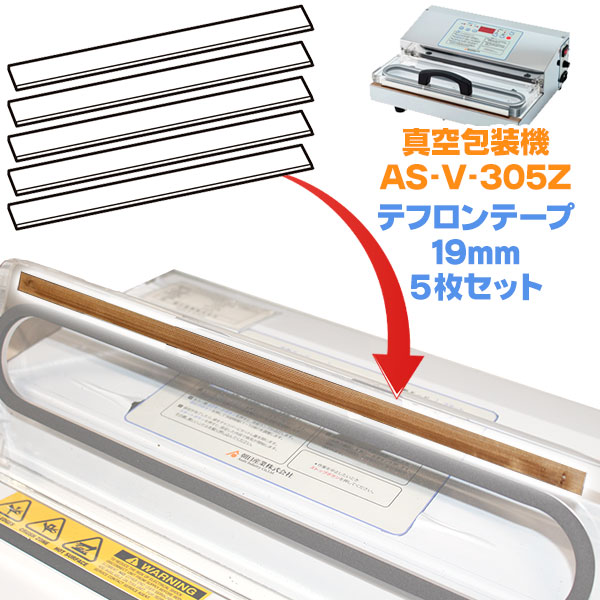 【部品】 業務用 朝日産業 真空包装機 AS-V-305Z用 テフロンテープ 19mm 5枚セット