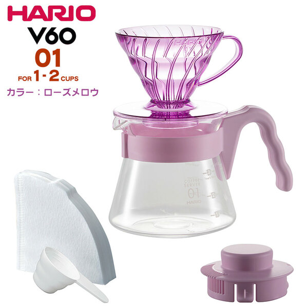 HARIO ハリオ V60 カラーブリュー 01 ローズメロウ 1-2杯用 V60発売20周年を記念した限定カラーの特別セット