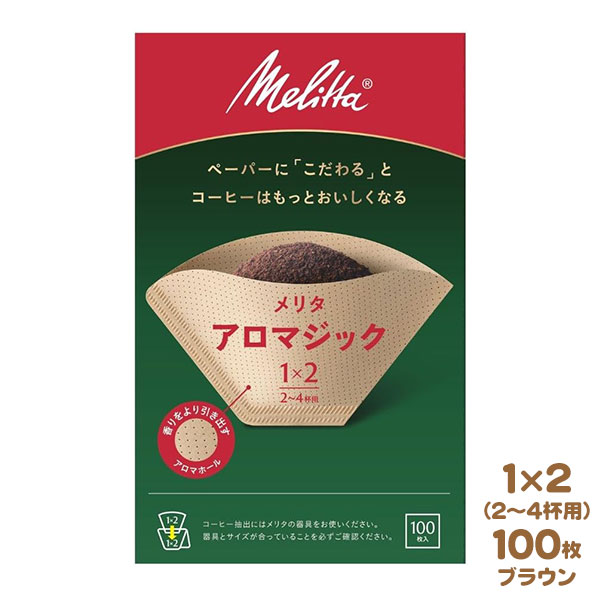 Melitta メリタ アロマジック ナチュラルブラウン 1x2(2〜4杯用) 100枚入 フィルターペーパー
