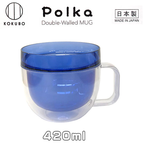 KOKUBO Polka ダブルウォールマグ 420ml ブルー AS樹脂製 小久保工業所