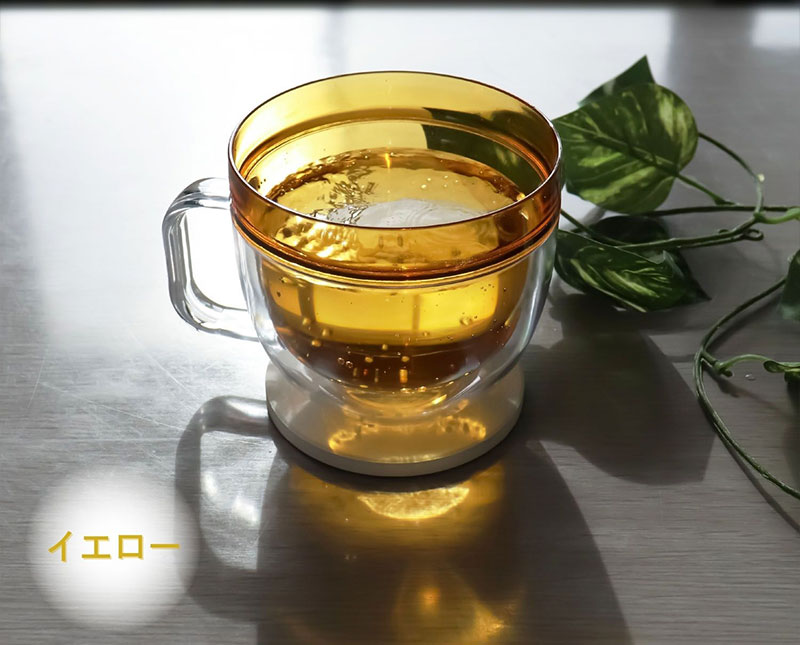 二重構造で結露しにくい。 Polkaダブルウォールマグ イエロー