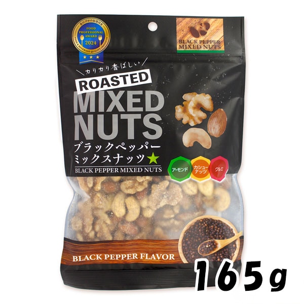 人気の3種類のナッツ(アーモンド、くるみ、カシュー)を 絶妙な配合の黒胡椒(ブラックペッパー)にまぶし、絶品に仕上げました。