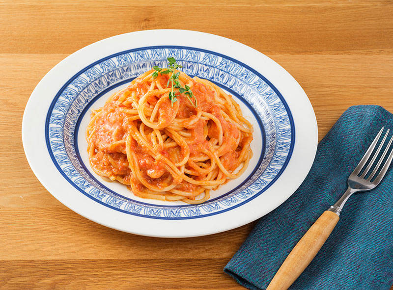国産の紅ズワイガニにイタリア産完熟トマトの旨みとアメリケーヌソースのコクを合わせたカニのトマトクリームソースです。