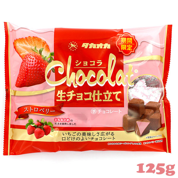 口溶けの良さを追求した人気シリーズ「ショコラ生チョコ仕立て」のいちご味です。 国産とちおとめのシーズニングを使用し、いちごの香りが口いっぱいに広がります。