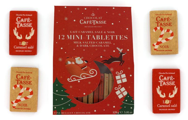 1989年に設立の Caf-tasse (カフェタッセ) は、フランス語でコーヒーカップを意味し、その名の通りコーヒーとのフィーリングを追求したチョコレートです。 アフリカ、南アメリカの選りすぐりのカカオ豆をブレンドして作られたチョコレートは、豊かなカカオの香りと濃厚でコクのある味わいが特徴です。ベルギーの代表的なチョコレートメーカーのひとつとしてヨーロッパ、アメリカ、アジアの40カ国ものチョコレートグルメたちに愛されています。