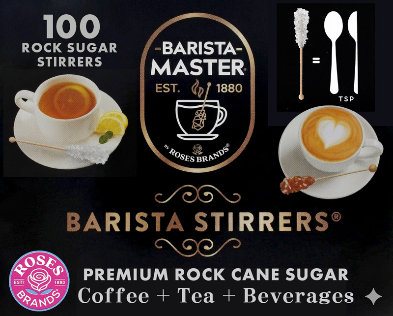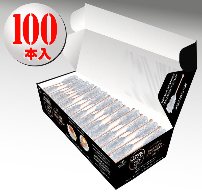 クリスタル状に精製された氷砂糖はロックキャンディと呼ばれ、デミタッセシュガースティックの ように大きなロックキャンディは、限りなくピュアに近い砂糖と高度な技術なしには作ることができません。