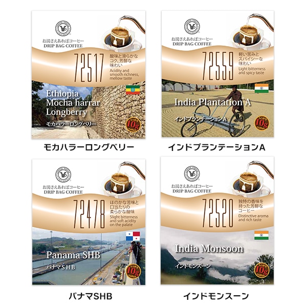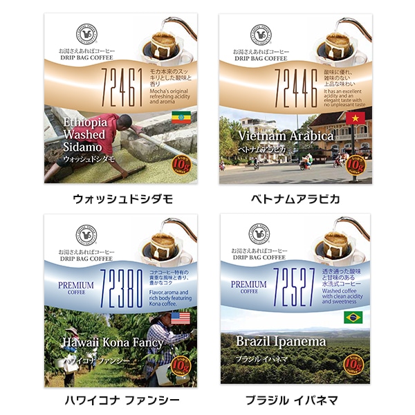 ※本品は、単品販売・個包装タイプのドリップバッグコーヒー10種類をクリアパックに入れたセット商品になります。 それぞれ製造時期の異なる限定販売品のため、セット品の販売を予告なく終了する場合がございます。予めご了承ください。