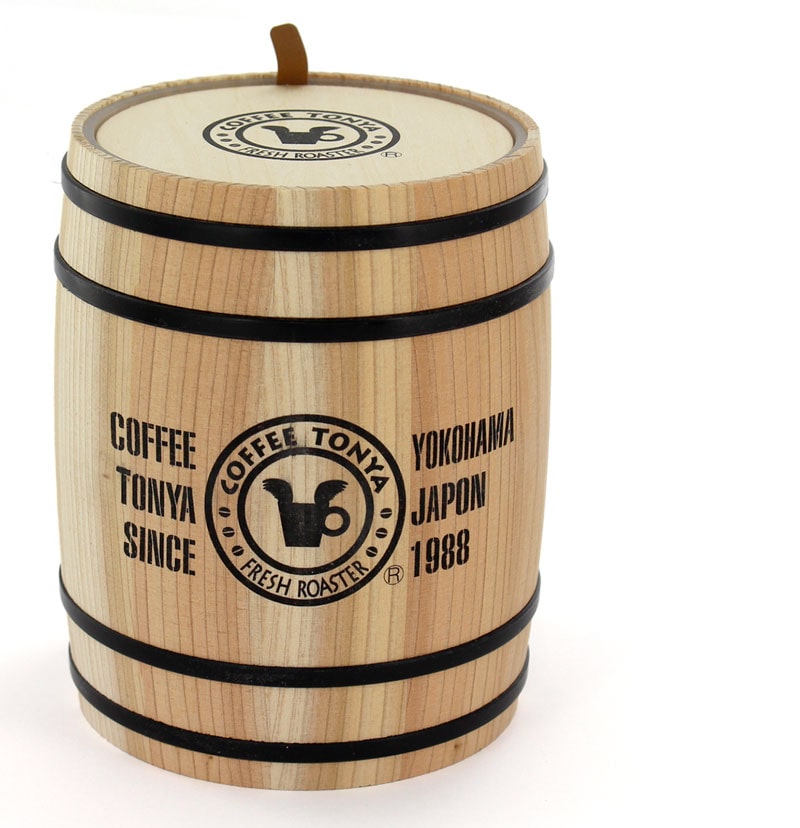 珈琲問屋のロゴが入ったかわいらしいミニ木樽です。