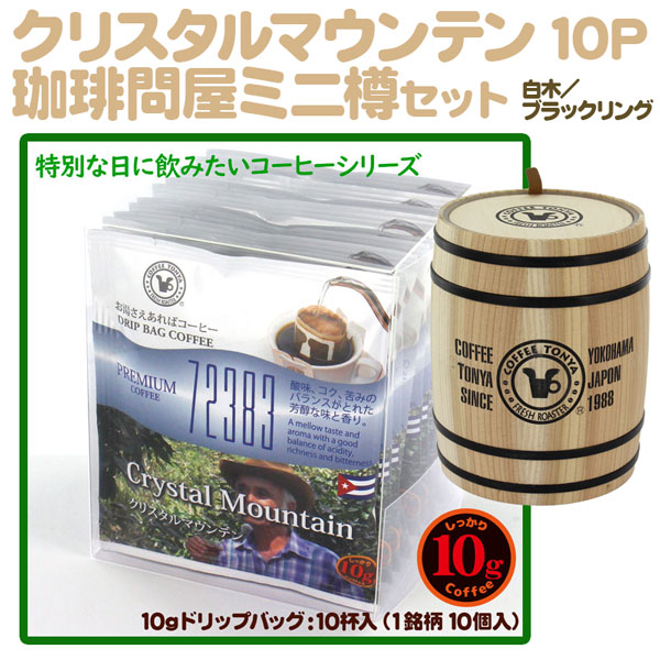 10gドリップバッグ クリスタルマウンテン 10杯 【10gx10袋】+珈琲問屋ミニ樽セット(白木 ブラックリング)