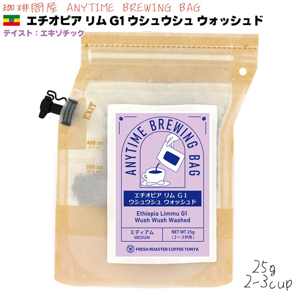 珈琲問屋 ANYTIME BREWING BAG 25g エチオピア リム G1 ウシュウシュ ウォッシュド エニタイム ブリューイング バッグ 2-3cup 【2026年1月だけの限定品】