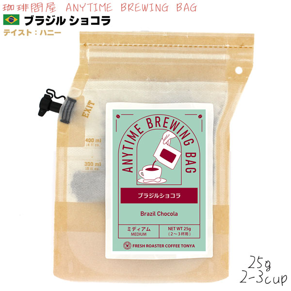 いつでも気軽にコーヒータイムが楽しめる珈琲問屋オリジナルのエニタイム ブリューイングバッグコーヒーです。 淹れ方はとても簡単で、上側からお湯を注ぎ、数分待ってカップやサーバーに注げば珈琲時間の始まりです。 ドリップバッグと違い一度に2〜3cup(最大400ml)のコーヒーが淹れられるのが特徴です。 抽出方法はフレンチプレスやカッピング(コーヒーのテイスティング)と同じ、浸漬式に近く、味の再現性が高いという特徴があるので、 スペシャルティコーヒーをじっくり味わうのにもおススメのパッケージになっています。