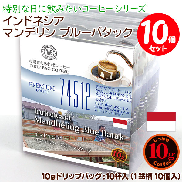 数量限定品 10gドリップバッグ 74512 インドネシア マンデリン ブルーバタック 10杯 お湯さえあればコーヒー 特別な日に飲みたいコーヒー 【10gx10袋】