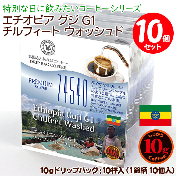 数量限定品 10gドリップバッグ 74540 エチオピア グジ G1 チルフィート ウォッシュド 10杯 お湯さえあればコーヒー 特別な日に飲みたいコーヒー 【10gx10袋】