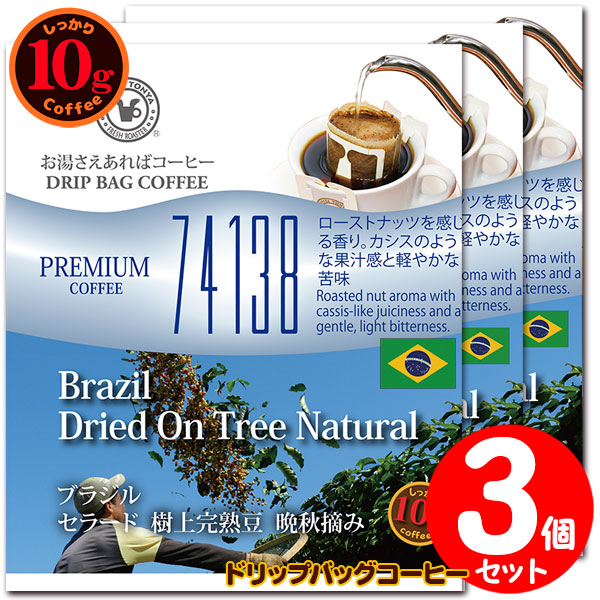 10gドリップバッグ 74138 ブラジル セラード 樹上完熟豆 晩秋摘み 3杯 お湯さえあればコーヒー 特別な日に飲みたいコーヒー 【10gx3袋】