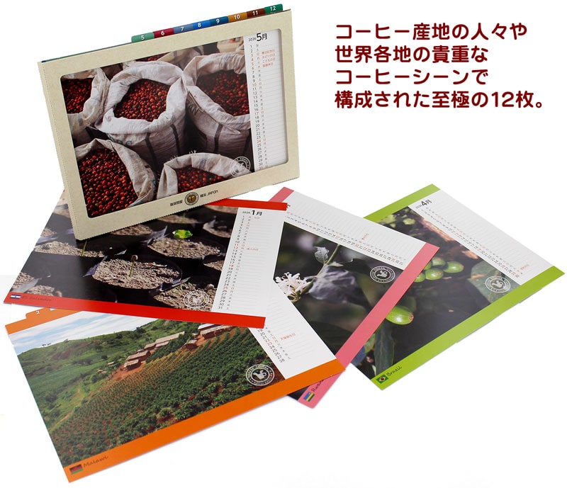 12枚綴りの2026年版、珈琲問屋オリジナル卓上カレンダーです。各国のコーヒーベルト地帯から選ばれた、貴重でリアルな写真が掲載されています。
