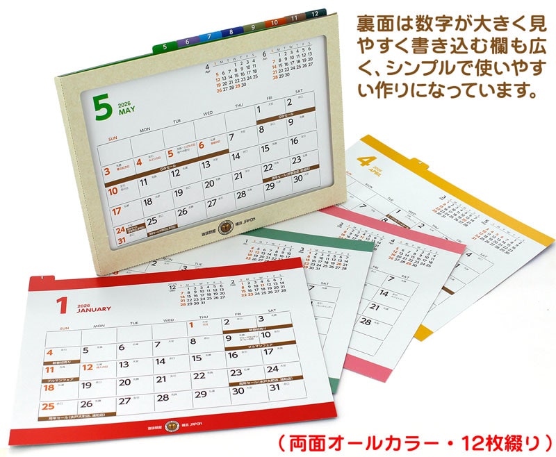 (裏面には前月と翌月も小さく表示しています。)包装以外は全て紙で出来ているエコな仕様です。