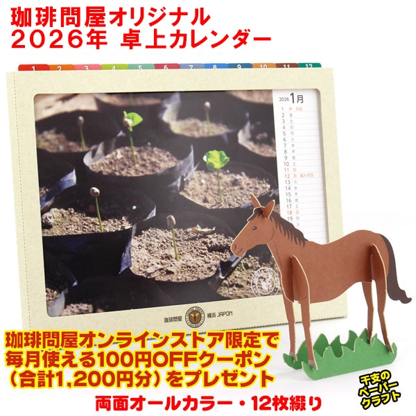 数量限定 珈琲問屋 2026年 卓上カレンダー 12枚綴り 【増量券ネット利用不可】 珈琲問屋オンラインストアで毎月使える100円OFFクーポン(合計1200円分)をプレゼント