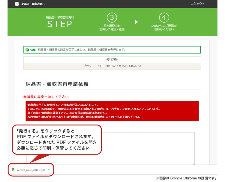 当店ではエコ(自然環境保全)の観点から納品書・領収書を電子化にし、