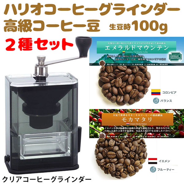HARIO クリアコーヒーグラインダー + エメラルドマウンテン(生豆時100g) + モカマタリ(生豆時100g)