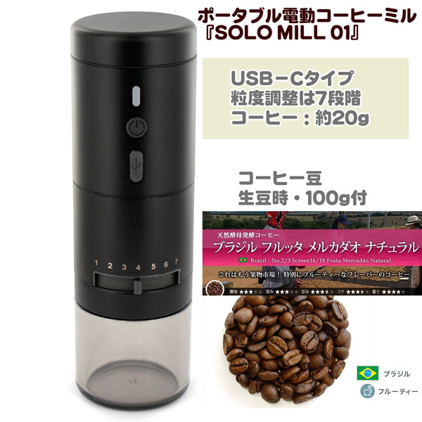 ポータブル電動コーヒーミル SOLO MILL 01 + ブラジル フルッタ メルカダオ ナチュラル (生豆時100g)
