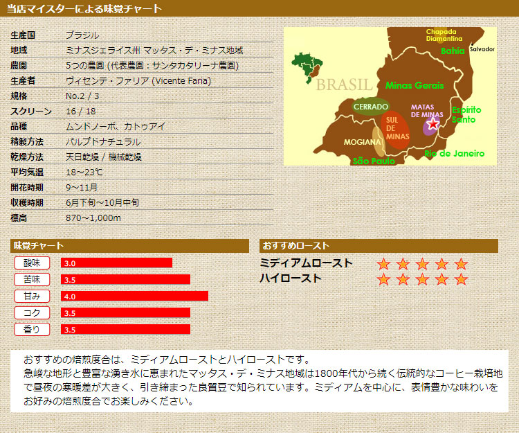 - 地域:ミナスジェライス州 マッタス・デ・ミナス地域