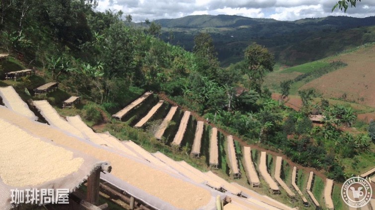 ソーキング後は、シェード付のドライベッドでパーチメントの表面乾燥をしつつ、虫食いや不完全パーチメントの手選別除去を行ってから、天日乾燥用のアフリカンベッドへ移し替え、16〜20日間かけて乾燥させていく、といった工程でコーヒーは仕上がっていきます。