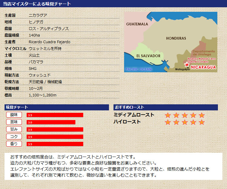 限定品 ニカラグア ロスアルティプラノス パカマラ