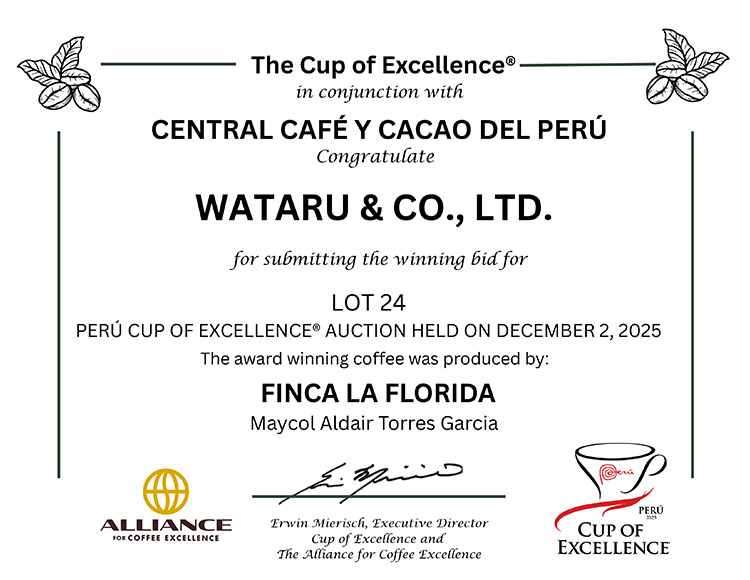 最高の中の最高のコーヒーを選ぶ「カップ・オブ・エクセレンス 2025 ペルー」に見事に選ばれたコーヒーが届きました! 明るくジューシーな飲みくちや、やさしい甘さが特長のゲイシャ・コーヒー「ラ フロリダ農園」です。