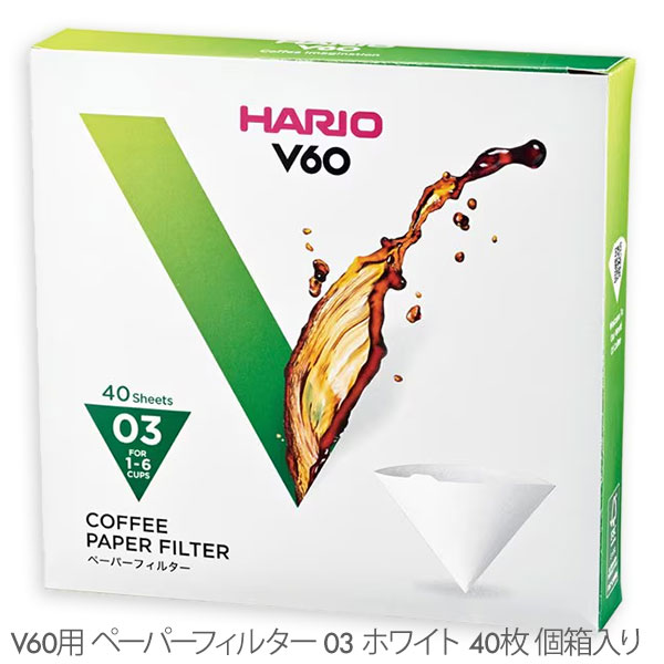 HARIO ハリオ V60 03用 ペーパーフィルター ホワイト 40枚 個箱入り VCF-03-40W 円錐フィルター
