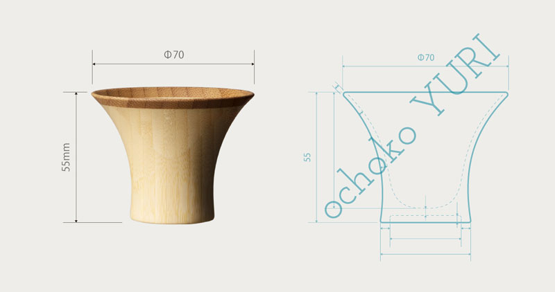 上部に向けて大きく広がる、ゆりの花をイメージしたラッパ型のおちょこ「YURI」。