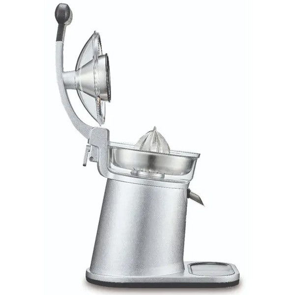 重厚なダイキャストアルミニウム製の大きなジューシングコーンにより、様々な大きさの柑橘系果実を、 ある程度の力が加えられると、自動的にモーターが始動し、ジューシングコーンが回転し、軽いプレス操作で簡単に、素早く100%果汁が作れます。
