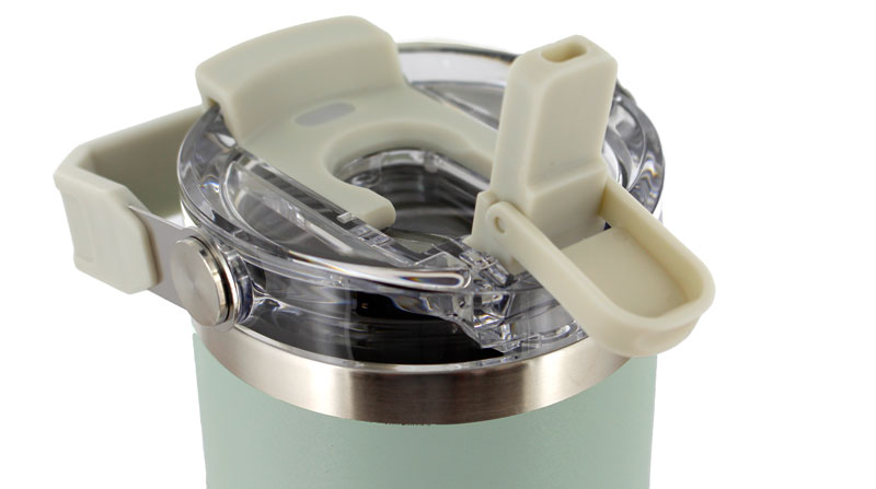 シリコンの飲み口(内部にはストロー付き)で、直飲みもできる2WAYタイプの大容量(900ml)タンブラーです。 もう一方の注ぎ口もしっかり閉じられるので、倒れても安心です。 ドリンクホルダー(直径約7.6cm以上に対応)にも入ります。 持ち運びに便利な持ち手付きで、フタはスクリュー式でしっかり閉じられるので安心です。