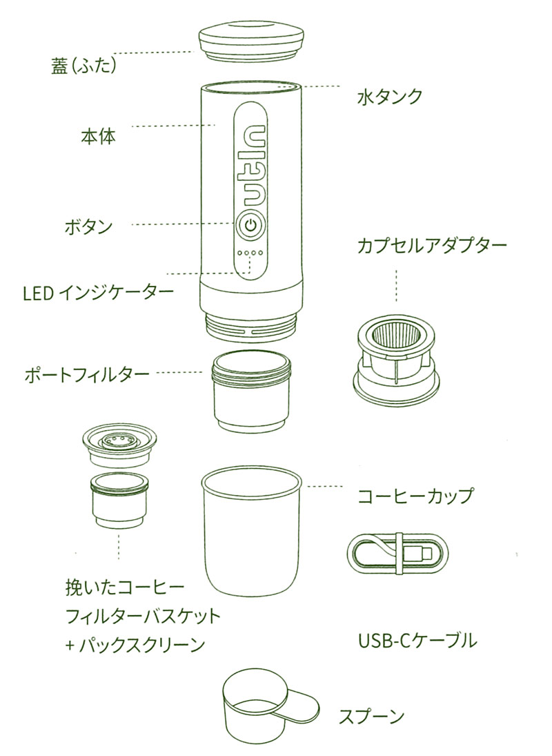 対応コーヒー:コーヒーパウダー(細挽き)、ネスプレッソ互換カプセル