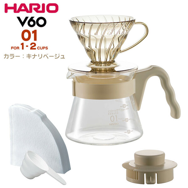 HARIO ハリオ V60 カラーブリュー 01 キナリベージュ 1-2杯用 V60発売20周年を記念した限定カラーの特別セット