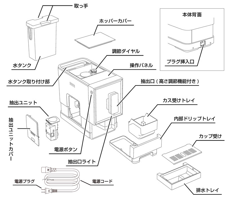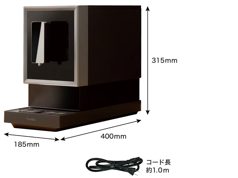 ※ご注意:本品は豆専用のエスプレッソマシンです。高圧抽出のため1杯あたりの容量は30〜60mlとなります(アメリカーノはルンゴにお湯を追加して約140ml)。豆のポテンシャルを最大限に活かすため、フルシティ(深煎り)以上の豆をご使用ください。