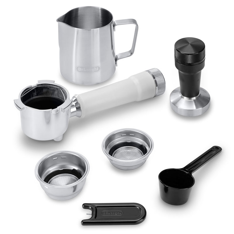 フィルターホルダー、1杯用フィルター/2杯用フィルター/44mmカフェポッド用フィルター、計量スプーン、タンパー、ミルクジャグ(ラテアートミルクピッチャー)