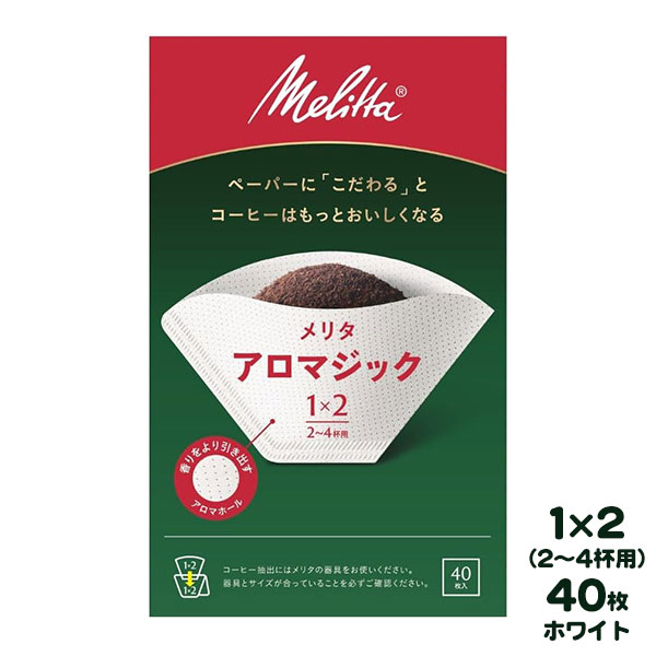 Melitta メリタ アロマジック ナチュラルホワイト 1x2(2〜4杯用) 40枚入 フィルターペーパー