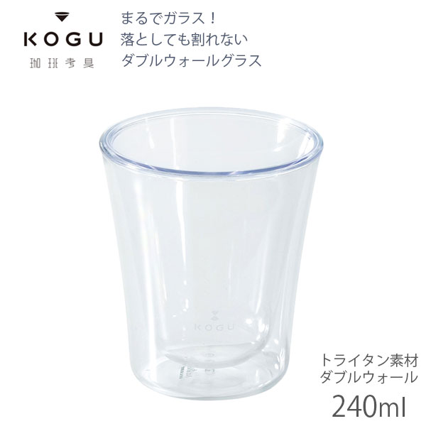 まるでガラス!でも落としても割れないダブルウォールグラスです。 割れない理由は哺乳びんにも使われている透明度あるトライタン素材(飽和ポリエステル樹脂)を使用しています。 2重構造にすることで、保冷に優れ結露もしにくくなります。 口あたりも滑らかで飲みやすいく、ホットもアルコールもOK。