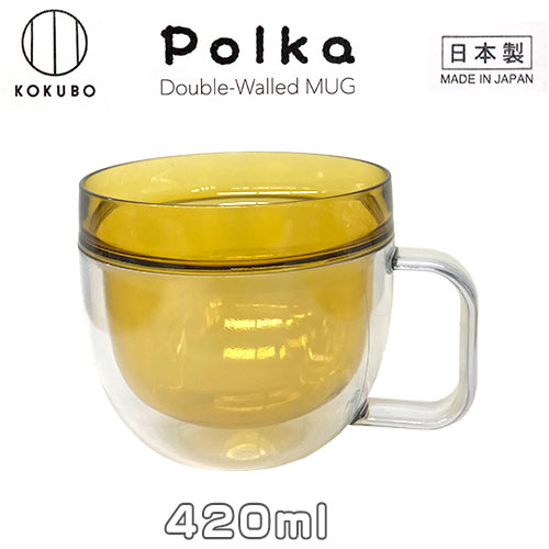 KOKUBO Polka ダブルウォールマグ 420ml イエロー AS樹脂製 小久保工業所
