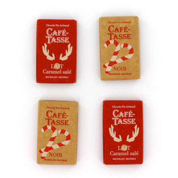 1989年に設立の Caf-tasse (カフェタッセ) は、フランス語でコーヒーカップを意味し、その名の通りコーヒーとのフィーリングを追求したチョコレートです。 アフリカ、南アメリカの選りすぐりのカカオ豆をブレンドして作られたチョコレートは、豊かなカカオの香りと濃厚でコクのある味わいが特徴です。ベルギーの代表的なチョコレートメーカーのひとつとしてヨーロッパ、アメリカ、アジアの40カ国ものチョコレートグルメたちに愛されています。