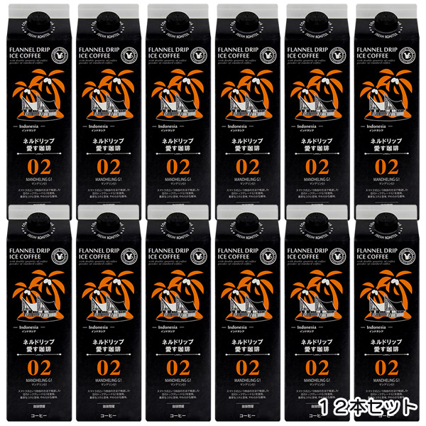 珈琲問屋 ネルドリップ愛す珈琲02 マンデリンG1 1000ml ×12本 無糖 リキッドアイスコーヒー テトラパック セット割引