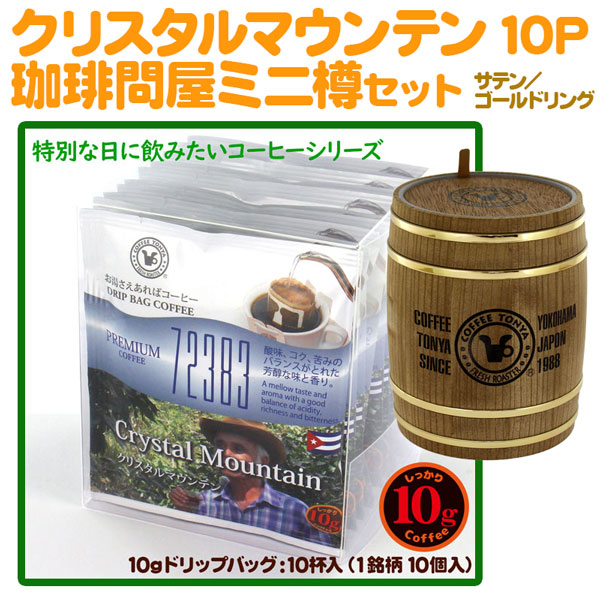 10gドリップバッグ クリスタルマウンテン 10杯 【10gx10袋】+珈琲問屋ミニ樽セット(サテン ゴールドリング)